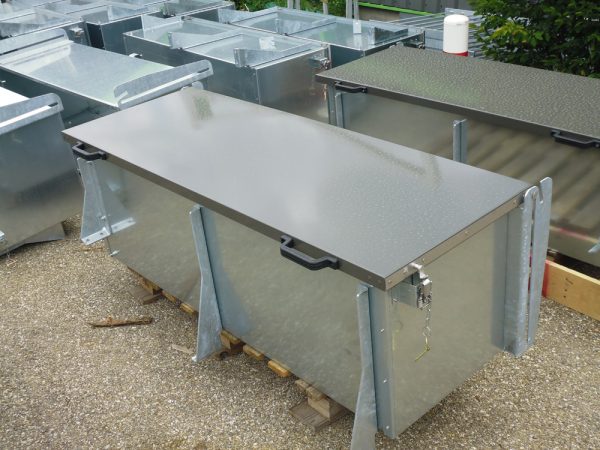 La fabrication de ces coffres en inox ou galva pour un grand constructeur de véhicules frigorifiques de la région, est réalisée dans nos ateliers et se décline en plusieurs dimensions selon le véhicule utilisateur. Ces coffres sont montés sur des châssis de camion. Des variantes de finition des portes de coffres sont réalisées à la demande du client.